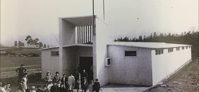 Superior dcha. Barracón de obras que se habilitó como iglesia antigua y escuela