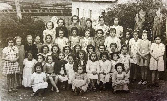 Superior izquierda: Doña Marina con sus alumnas en el patio de la escuela