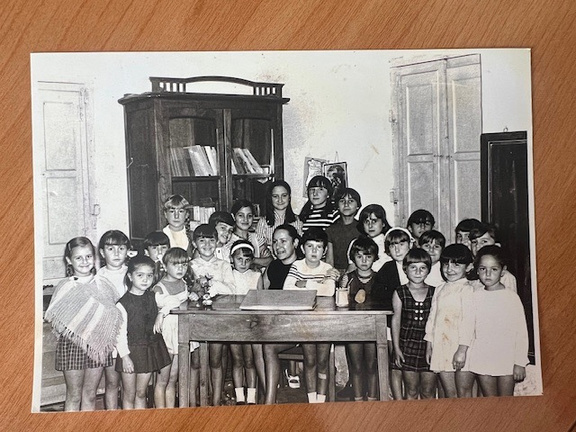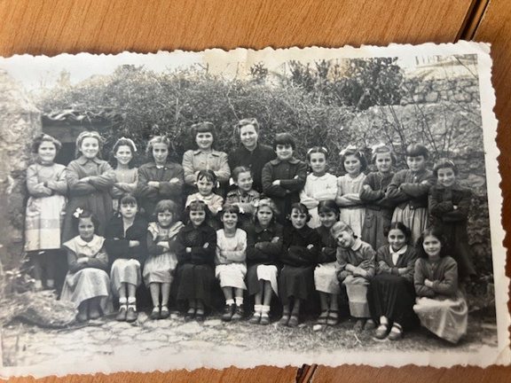 Superior dcha: Imagen de alumnas del colegio La Asunción con la Señorita Aurora. 1978
