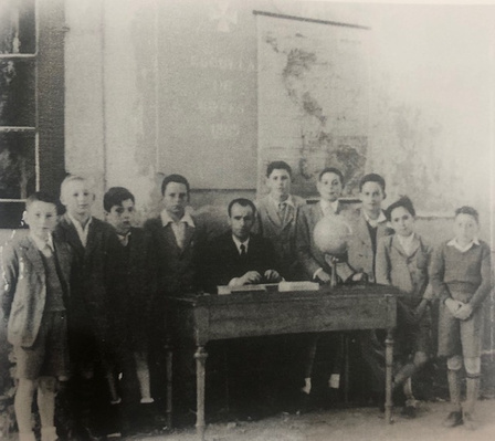 Inferior izda. Maestro Don Antonio con sus alumnos en sus primeros años.
