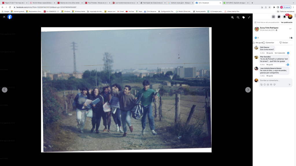 Arriba: subiendo al Instituto desde Pumarín por los “praos” de Montevil. Facebook Sussy Feito Rguez.
