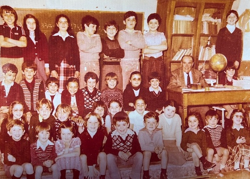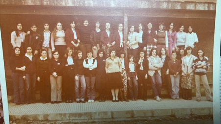 Superior dcha: Imagen de alumnas del colegio La Asunción con la Señorita Aurora. 1978