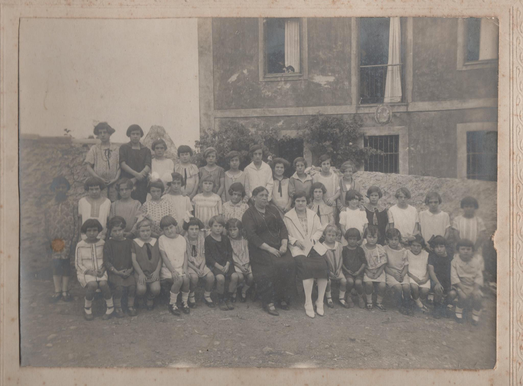 Superior izquierda: Doña Marina con sus alumnas en el patio de la escuela