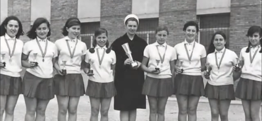 Inferior centro: Alumnas con monja de La Asunción en década de los 60